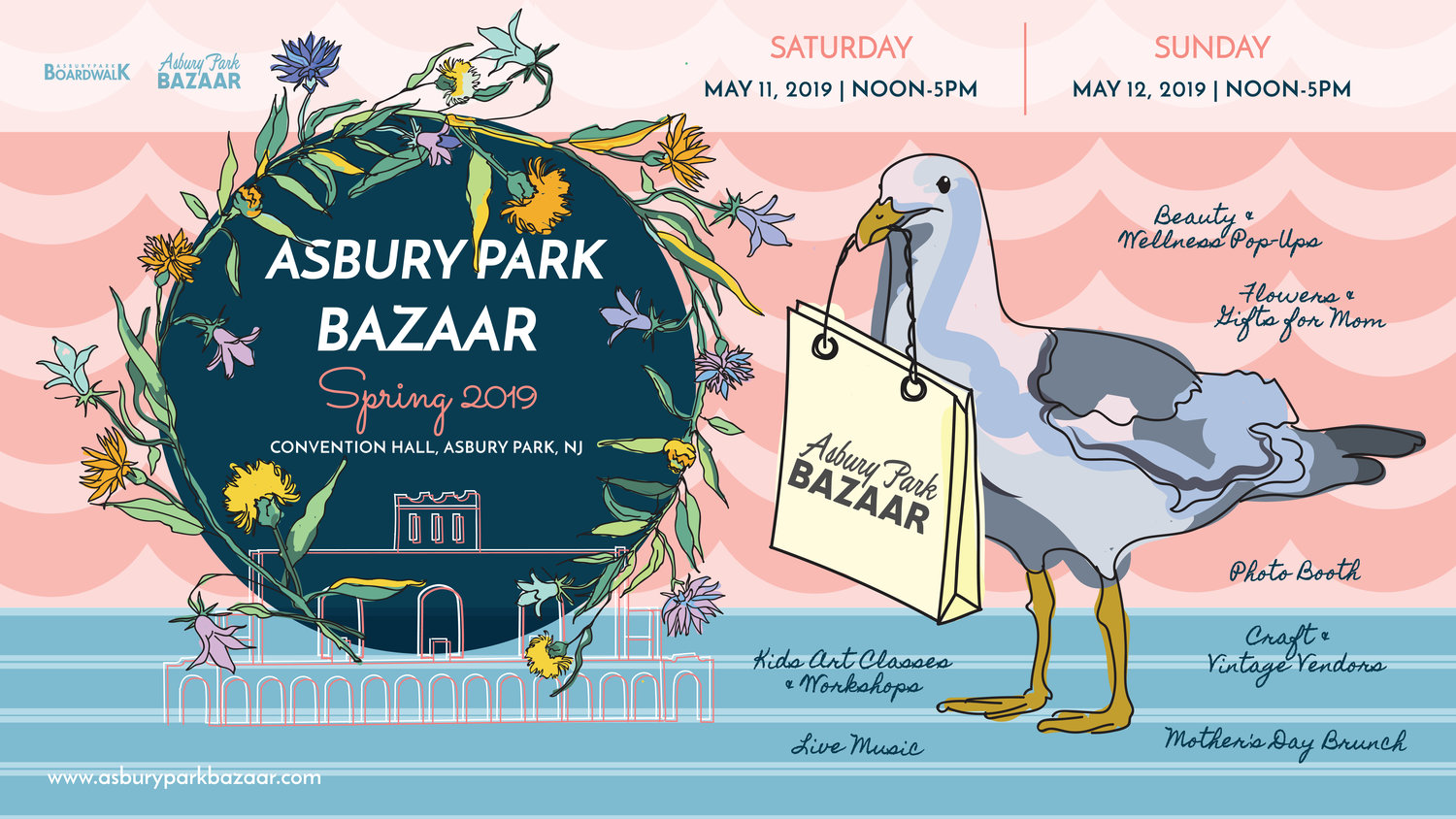 Celebrate Mother’s Day weekend at the Asbury Park Spring Bazaar on Saturday & Sunday, May 11th & 12th, 2019, from Noon – 5 pm, at Asbury Park Convention Hall! The weekend will feature a shopping, arts & crafts, and music experience in one of the most beautiful, historic locations right on on the beach in Asbury Park