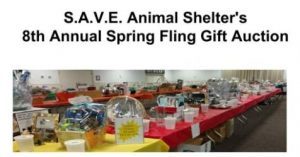 S.A.V.E. Animal Shelter’s is proud to announce their 8th Annual Spring Fling Gift Auction. This party is a major fundraiser of theirs. The price to attend is $15.00, which includes a free sheet of tickets, free coffee, tea and dessert. Food can purchased at that time. It is always a fun night for all. Auction, Lottery Hat, Birthday Board and 50/50.