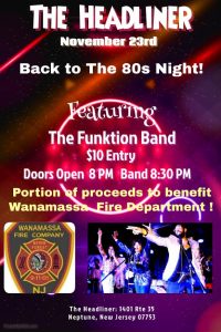 We are proud to announce a show to benefit The Wanamassa Fire Co. Portion of entry fee to go to New Jerseys Bravest! Live show with The Funktion Band!